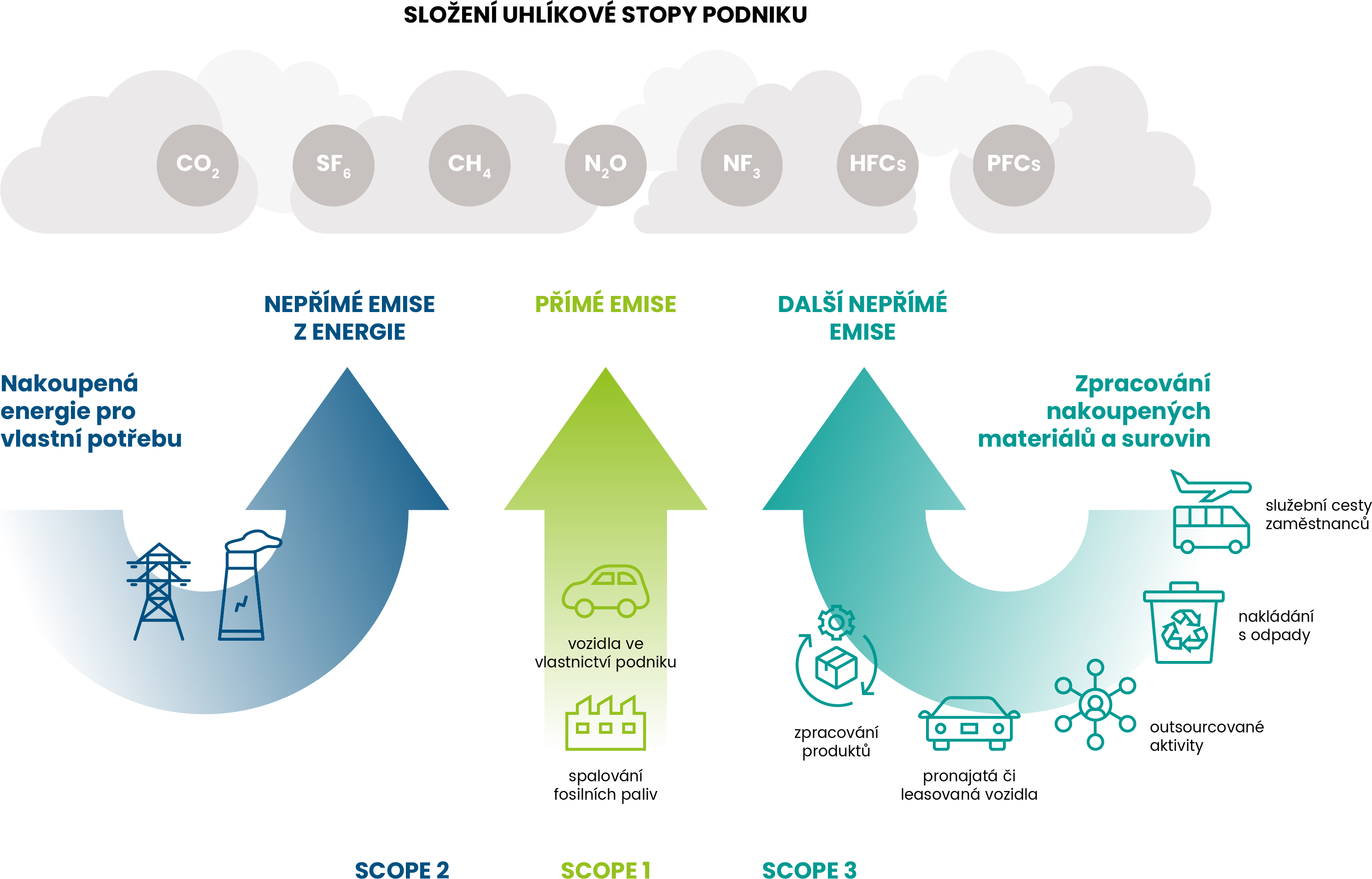 Výpočet uhlíkové stopy je dán evropskou legislativou (založenou na GHG Protocol Corporate Standard odpovídající standardům ISO 14064 na úrovni organizace, ISO 14067 na úrovni produktu), která rozděluje emise do tří základních typů: Scope 1, 2 a 3. Firma musí spočítat emise CO2 vyprodukované svojí činností ať už přímo v rámci svých aktivit (Scope 1), tak i nepřímé emise (Scope 2-3) vznikající např. nákupem energie či materiálu od dodavatelů.